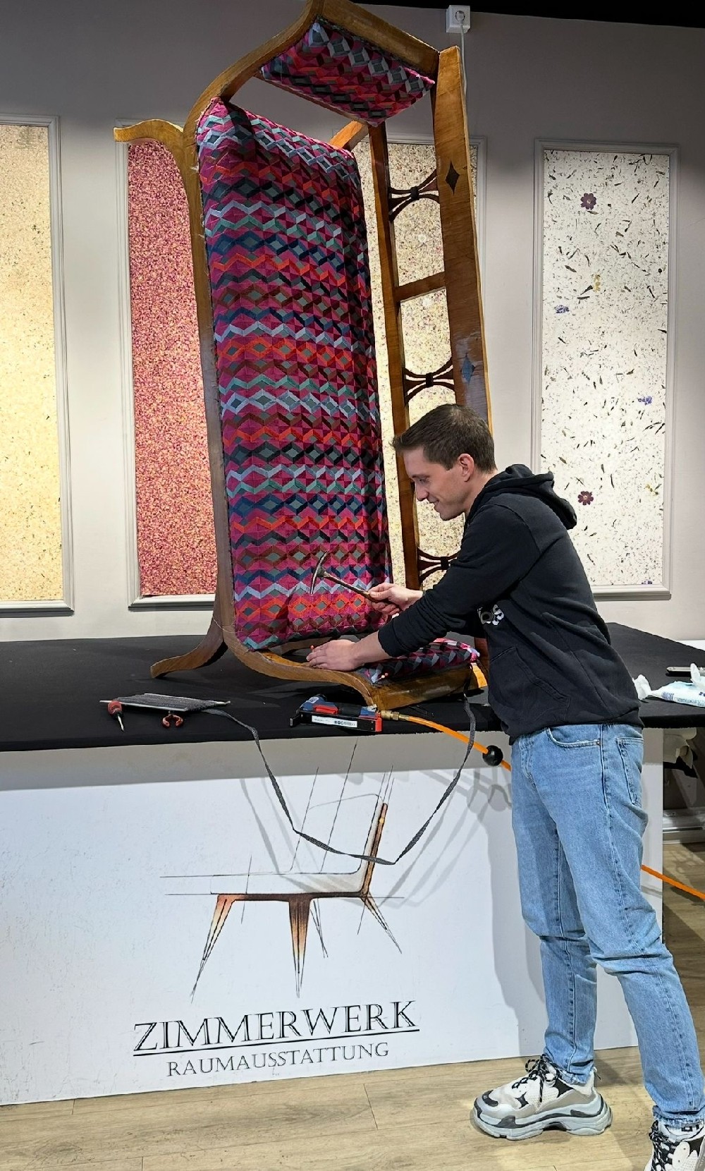 Zimmerwerk vereint Handwerk & Design: Sofas, Sessel, Vorhänge, Tapeten & Teppiche nach Maß. Stoffvielfalt aus fast 100 Häusern, darunter Loro Piana & Etro. Und das Highlight: Kvadrat/Raf Simons – exklusiv nur bei Zimmerwerk. Für alle, die besondere Räume & außergewöhnliche Materialien lieben.